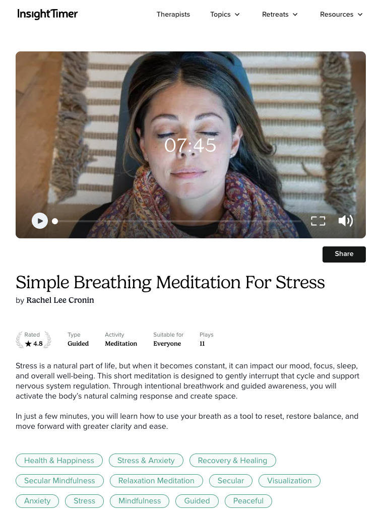 At Soul Center Holistic Health, connection and community are at the heart of everything we do. Along my journey, I have had the privilege of forming meaningful connections with both clients and staff, and I wanted to create a way to continue nurturing those relationships beyond our sessions together. As part of this intention, I have joined the many teachers on Insight Timer and am offering a collection of free guided meditations as a way to stay connected and continue sharing tools for healing, reflection, and inner balance. These meditations are an open invitation for you to pause, breathe, and reconnect with yourself whenever you need a moment of support and grounding.